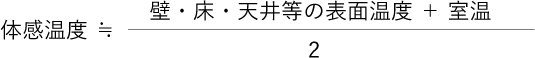 暑さや寒さの感覚(体感温度)は室温(室内の空気温度)だけで決まるのではなく、床、壁あるいは天井などの表面温度に影響されます。たとえば冬期に暖房機器を使って室温を高くしても、外気に面した壁の断熱が不十分であれば表面温度は低くなり、冷輻射により体感温度は室温より低くなります。夏期に冷房をしても屋根や天井の断熱が不十分であれば最上階の天井の表面温度が高くなり、体感温度は室温より高くなってしまいます。